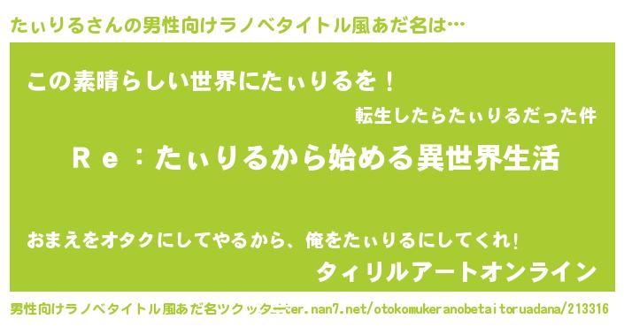 | ヒーロー風カッコイイあだ名 | 『最強戦士タィリル』『仮面タィダー』 |