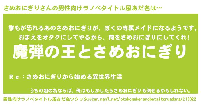 | 意味不明あだ名 | 『住所不定無職さめおにぎり(62歳)』 |