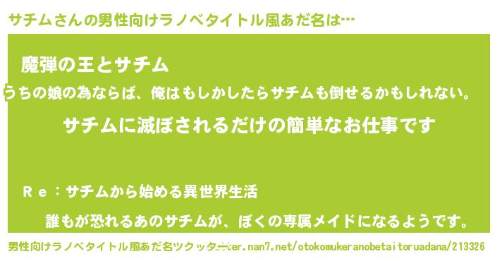 | ヒーロー風カッコイイあだ名 | 『仮面サチダー』『ネオサチム』 |