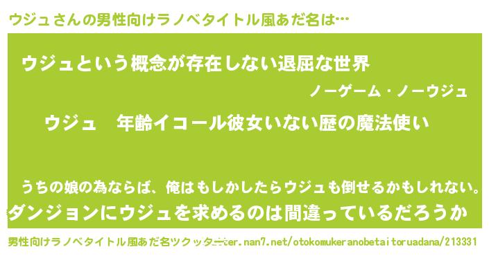 | ヘコむあだ名 | 『ウジュ(笑)』『ウジお』『つくし』 |