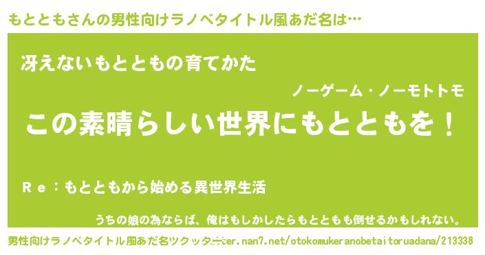 | 意味不明あだ名 | 『住所不定無職もととも(9歳)』 |