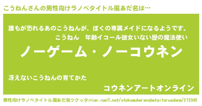 | ヒーロー風カッコイイあだ名 | 『慈愛の使者こうねん』『ネオコウネン』 |