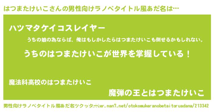 | ヒーロー風カッコイイあだ名 | 『仮面ハツダー』『ネオハツマタケイコ』 |