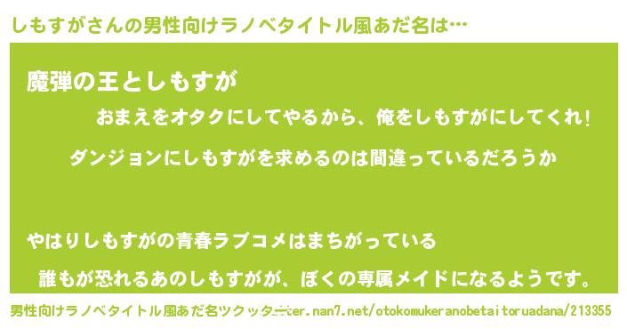 | 女子向けラノベタイトル風あだ名 | 『しもすがは平凡を望む』 |