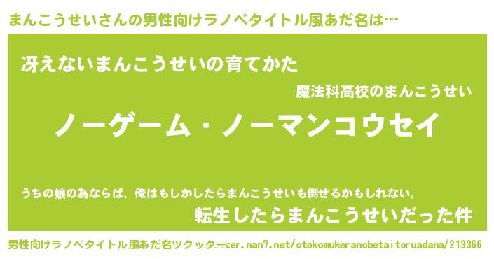 | 女子向けラノベタイトル風あだ名 | 『まんこうせい恋絵巻』 |