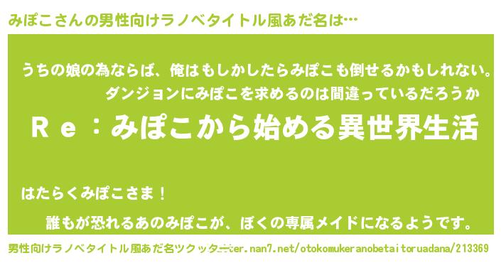 | 女子向けラノベタイトル風あだ名 | 『闇のみぽこ』『みぽこ伯爵の花嫁』 |