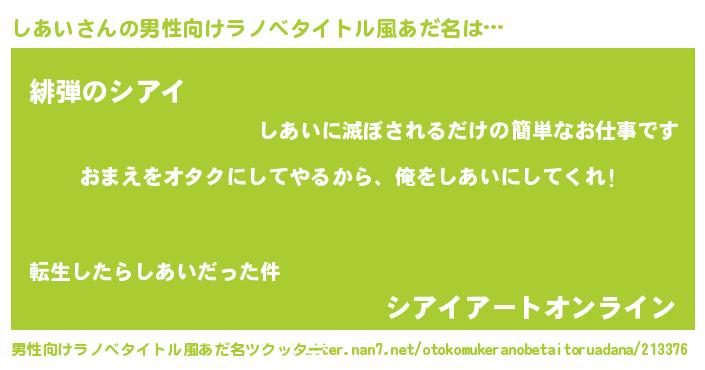 | 女子向けラノベタイトル風あだ名 | 『しあい夫妻のなれそめ』 |