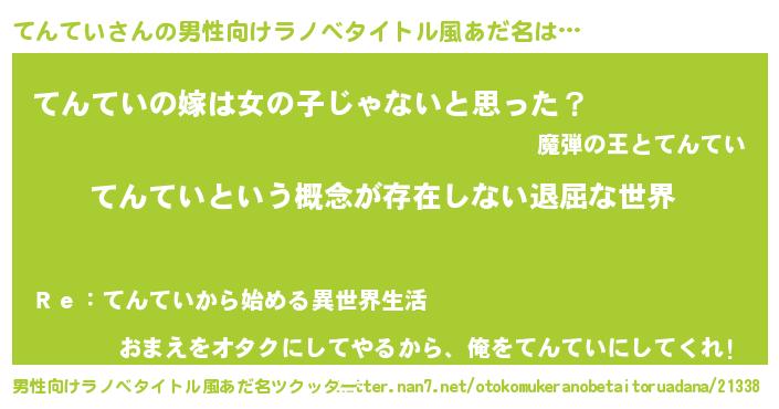 | 意味不明あだ名 | 『永久保存てんてい』『自称てんてい』 |