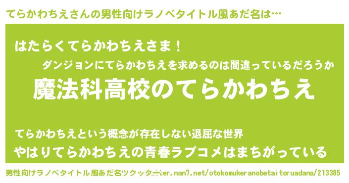 | 女子向けラノベタイトル風あだ名 | 『てらかわちえアンティーク』 |