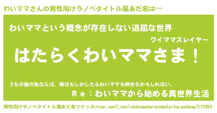 | 胡散臭い通販商品みたいなあだ名 | 『絶対に幸福をもたらす健康食品…その名も「わいママ」』 |