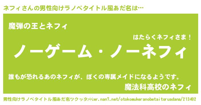 | ヘコむあだ名 | 『ネフィ(苦笑)』『牛乳』『ネフっ子』 |