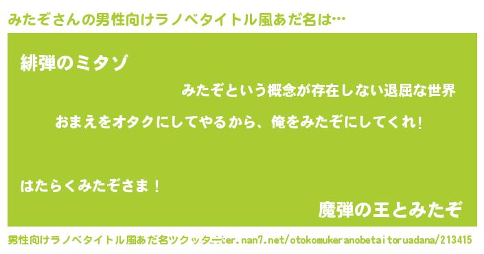 | 女子向けラノベタイトル風あだ名 | 『みたぞ夫妻のなれそめ』 |