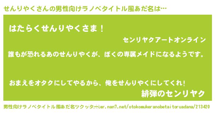 | 女子向けラノベタイトル風あだ名 | 『異世界でカフェせんりやくを開店しました。』 |