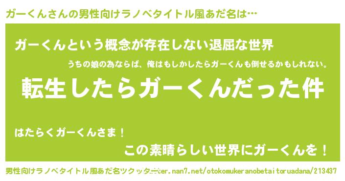 | 胡散臭い通販商品みたいなあだ名 | 『来世でも幸せになれる健康食品…その名も「ガーくん」』 |