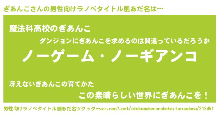 ぎあんこさんの男性向けラノベタイトル風あだ名をツクッター!