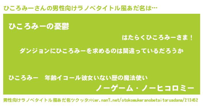 | 女子向けラノベタイトル風あだ名 | 『ひころみーの卵を拾いまして』 |