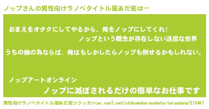 | 胡散臭い通販商品みたいなあだ名 | 『世界が平和になる高級そうな絵画…その名も「ノップ」』 |