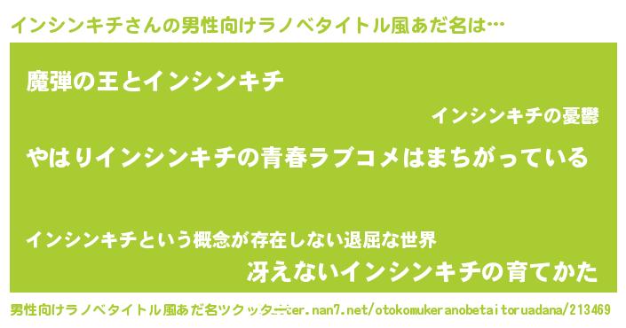 | 意味不明あだ名 | 『インシンキチフォーエバー』 |