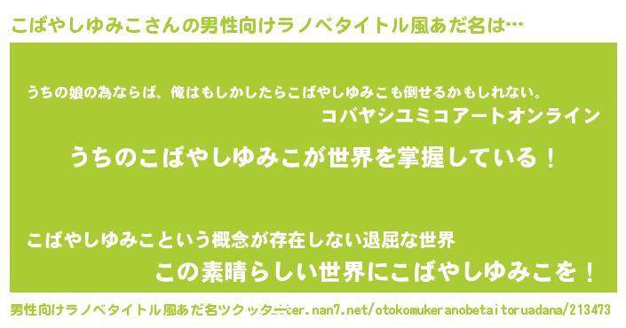 | 胡散臭い通販商品みたいなあだ名 | 『運命の人と巡り会える高級そうな壺…その名も「こばやしゆみこ」』 |