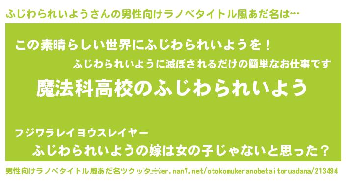| 女子向けラノベタイトル風あだ名 | 『ふじわられいようアンティーク』 |
