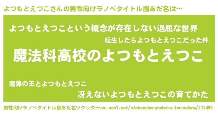 | 女子向けラノベタイトル風あだ名 | 『よつもとえつこなんてお断りですっ。』 |