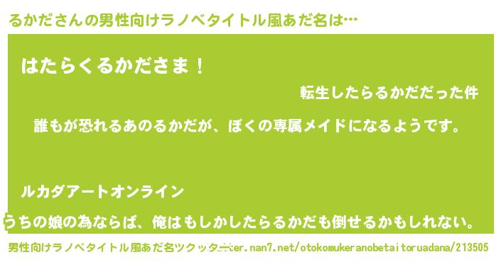 | ファンタジー風あだ名 | 『ルカディッシュ』『エターナルルカダー』 |