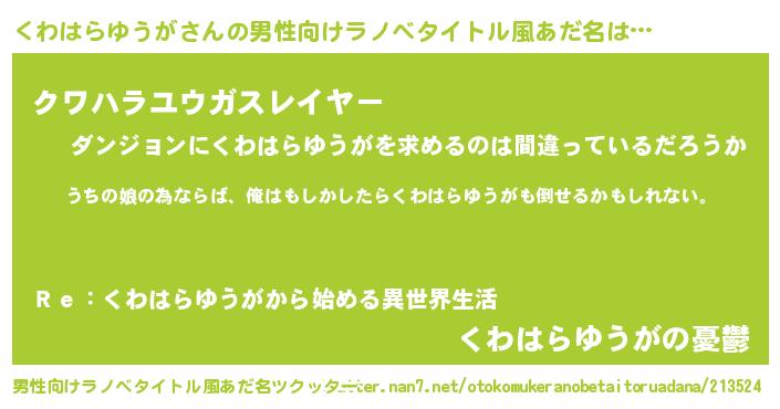 | 胡散臭い通販商品みたいなあだ名 | 『世界が平和になる高級そうな絵画…その名も「くわはらゆうが」』 |