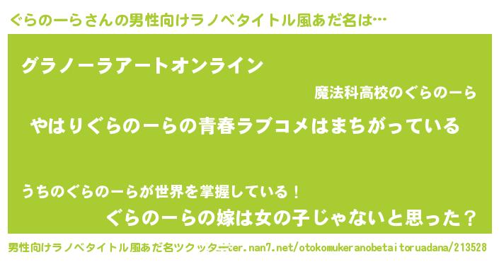 | 女子向けラノベタイトル風あだ名 | 『ぐらのーらの雑貨屋さん』 |