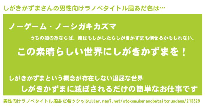 | 意味不明あだ名 | 『住所不定無職しがきかずま(65歳)』 |