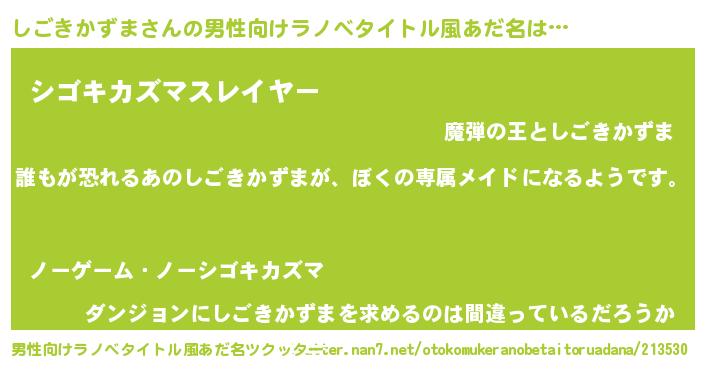 | ヒーロー風カッコイイあだ名 | 『ネオシゴキカズマ』『暗黒騎士シゴ』 |