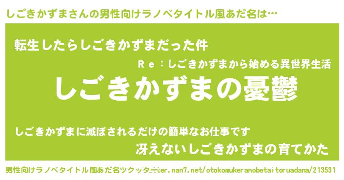 | 女子向けラノベタイトル風あだ名 | 『(仮)しごきかずまのやんごとなき事情』 |
