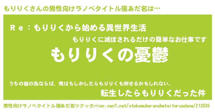 | 胡散臭い通販商品みたいなあだ名 | 『必ず成功する水晶球…その名も「もりりく」』 |