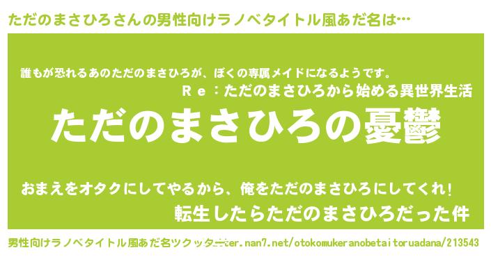 | 女子向けラノベタイトル風あだ名 | 『ただのまさひろ姫と円卓の騎士』 |