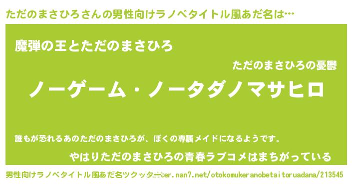 | ヒーロー風カッコイイあだ名 | 『慈愛の使者ただのまさひろ』 |