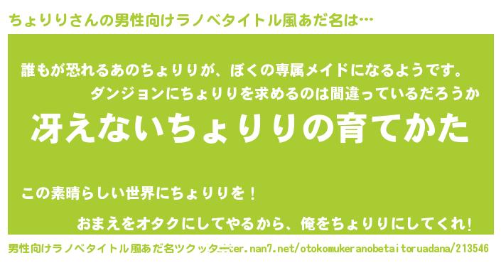 | ヘコむあだ名 | 『ちょりり(笑)』『ちょお』 |