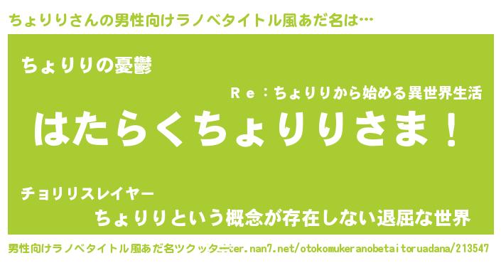 | 胡散臭い通販商品みたいなあだ名 | 『モテモテ間違いなし水晶球…その名も「ちょりり」』 |