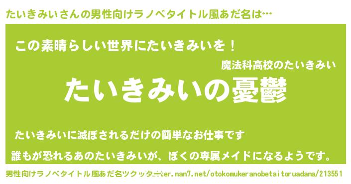 | 女子向けラノベタイトル風あだ名 | 『(仮)たいきみいのやんごとなき事情』 |