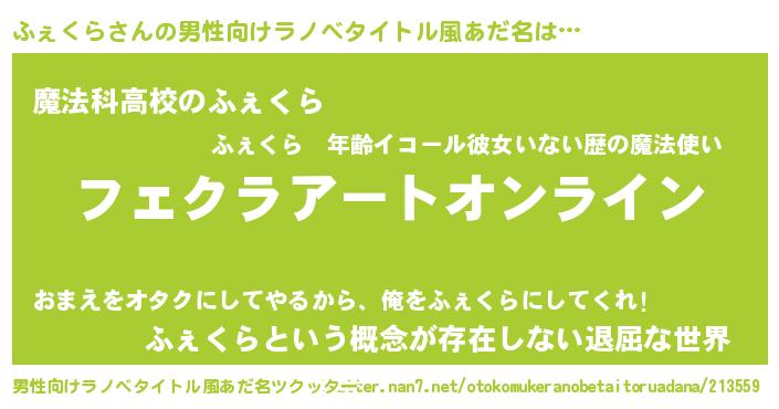 | 女子向けラノベタイトル風あだ名 | 『誰かこのふぇくらを説明してください! ~契約から始まるウェディング~』 |