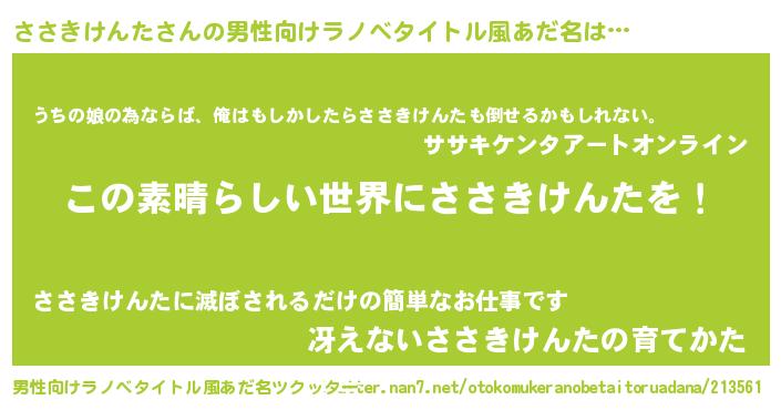 | 女子向けラノベタイトル風あだ名 | 『悪役ささきけんたに転生したようですが、知った事ではありません』 |