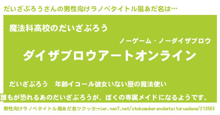 | 女子向けラノベタイトル風あだ名 | 『だいざぶろう姫と円卓の騎士』 |
