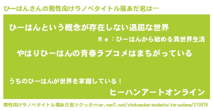 | 胡散臭い通販商品みたいなあだ名 | 『幸せが訪れる高級そうな絵画…その名も「ひーはん」』 |
