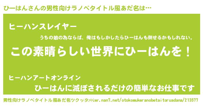 | 意味不明あだ名 | 『住所不定無職ひーはん(43歳)』 |