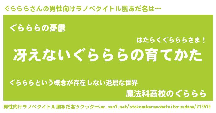 | ヘコむあだ名 | 『ぐらもー』『ぐららら(苦笑)』 |