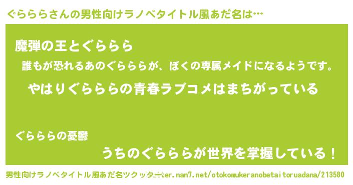 | 女子向けラノベタイトル風あだ名 | 『ぐらららの雑貨屋さん』 |