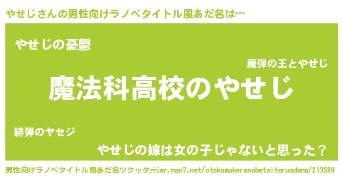 | 女子向けラノベタイトル風あだ名 | 『やせじなんてお断りですっ。』 |