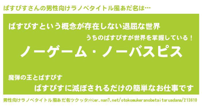 ばすぴすさんの男性向けラノベタイトル風あだ名をツクッター!