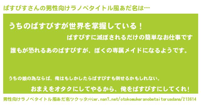 | 女子向けラノベタイトル風あだ名 | 『異世界でカフェばすぴすを開店しました。』 |