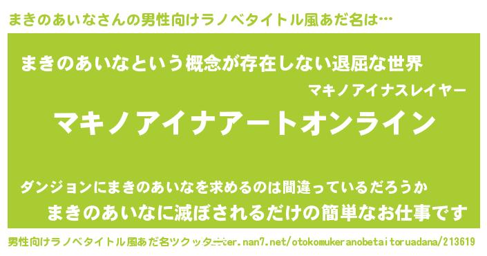 | 女子向けラノベタイトル風あだ名 | 『誰かこのまきのあいなを説明してください! ~契約から始まるウェディング~』 |