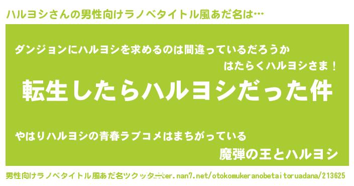 | ヘコむあだ名 | 『ハルを』『つくし』『ハルにゅー』 |