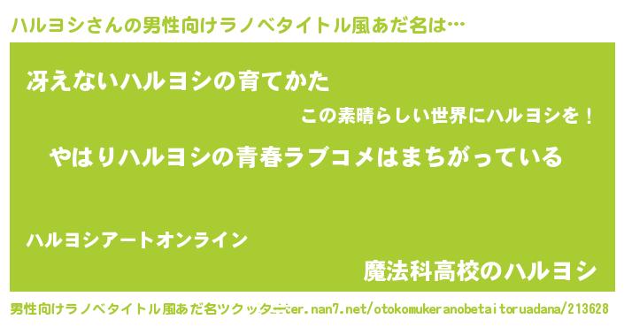 | 女子向けラノベタイトル風あだ名 | 『ハルヨシ伯爵の花嫁』 |